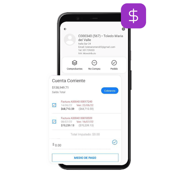 Las Cobranzas a clientes permiten administrar una cuenta corriente con la información completa de cada cuenta.