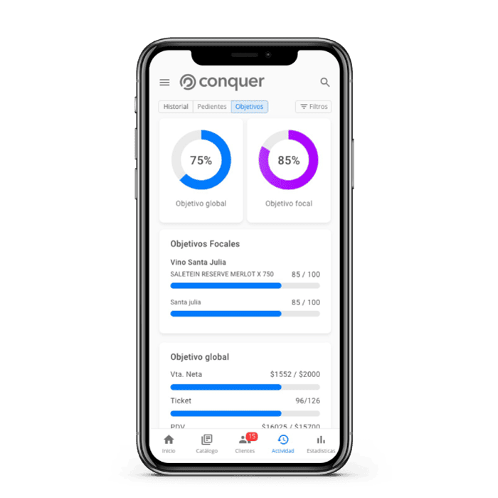 Conquer permitirá establecer objetivos Generales, como cantidad de facturación esperada, ticket promedio, cantidad de ventas por pdv, frecuencia de visita, entre otros.